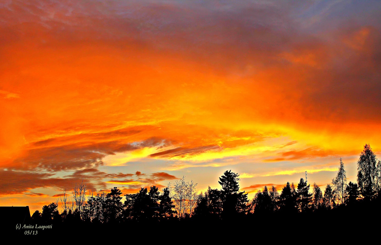 Kuten eilen facebook sivuillani lupasin niin nyt tulee näitä toissa iltaisia kuvia, jotka eilen illalla/yöllä katselin jo valmiiksi. Oltiin siis Anopilla Jämsänkoskella ja siinä pihalla istuessamme bongasin ihanan värikkään taivaan, joten eikun kamera käteen ja menoks.